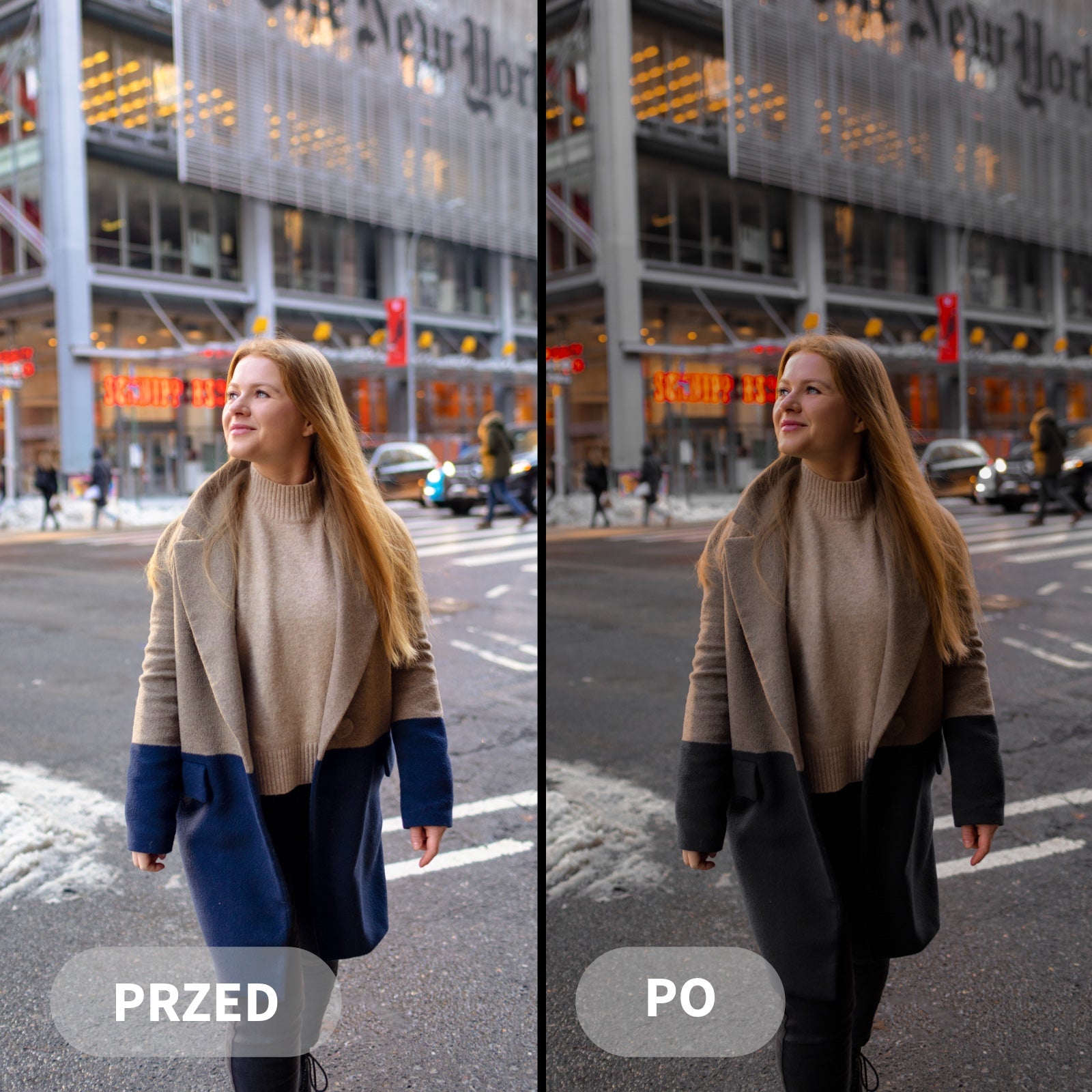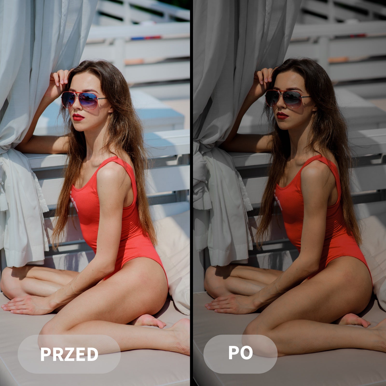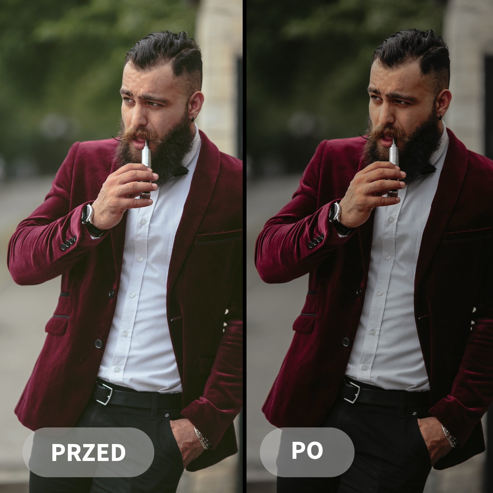Preset Film Noir výrazně zdůrazňuje černé tóny, prohlubuje stíny a zvýrazňuje ostré světlo, čímž vytváří charakteristickou filmovou atmosféru.