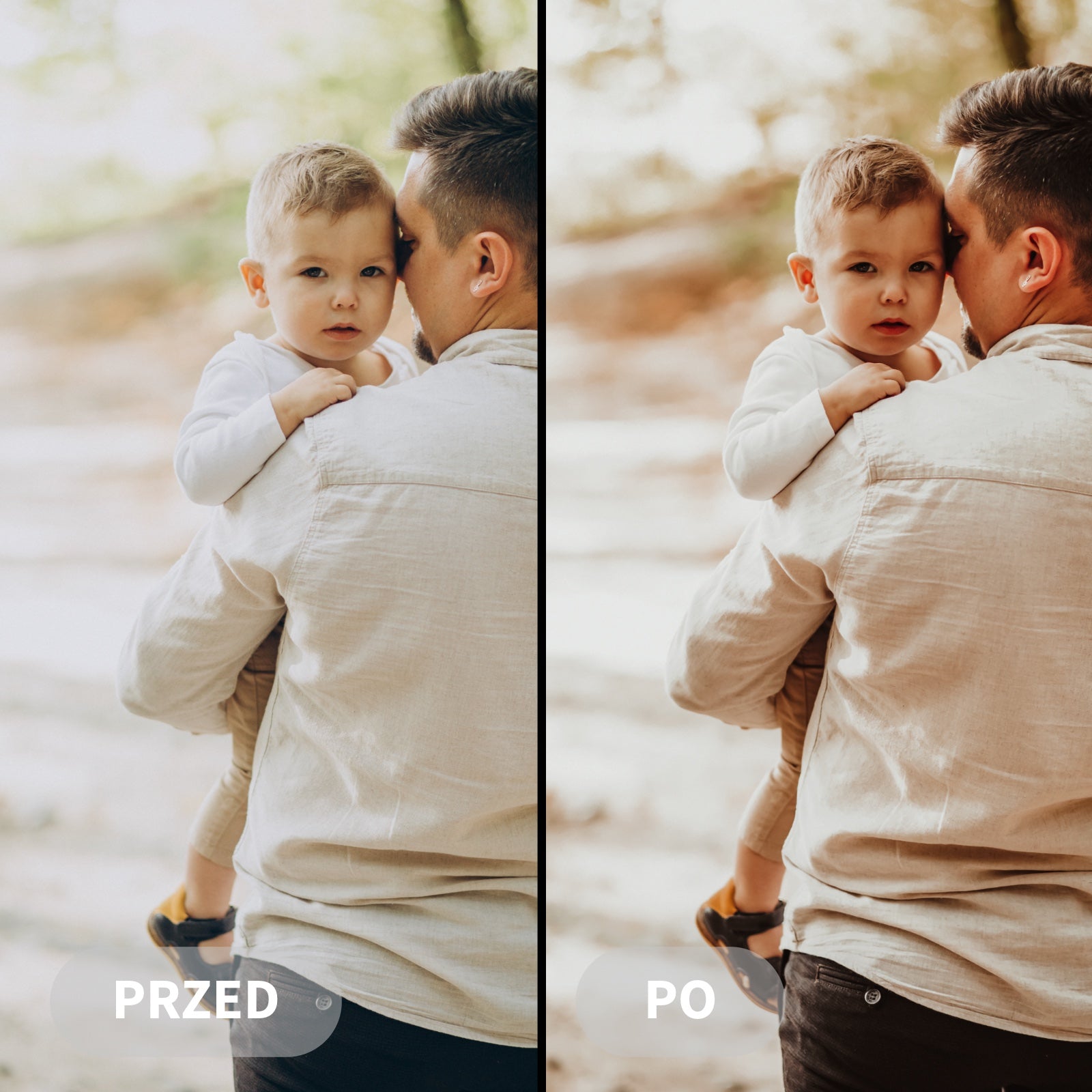 Preset Perfect Family jemně zesvětluje snímky, zdůrazňuje teplé tóny pleti a pastelové barvy, čímž fotografiím dodává jemný, harmonický a příjemný vzhled.